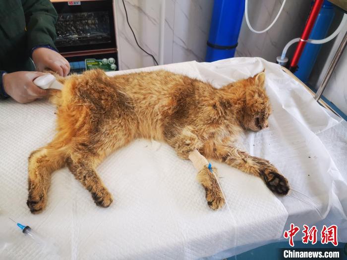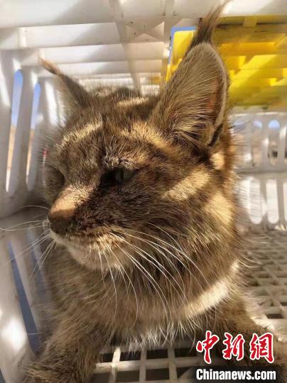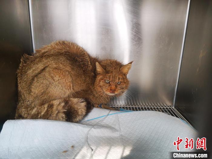 圖為被救護的荒漠貓“黃老太”?!∏嗪R吧鷦游锞茸o繁育中心供圖