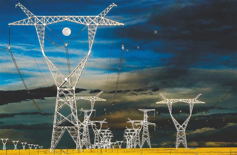 青藏、川藏、藏中、阿里電網(wǎng)聯(lián)網(wǎng),四條“電力天路”點(diǎn)亮西藏千家萬(wàn)戶。2015年以來(lái), 累計(jì)外送電量92億千瓦時(shí)。圖為“電力天路”鐵塔。