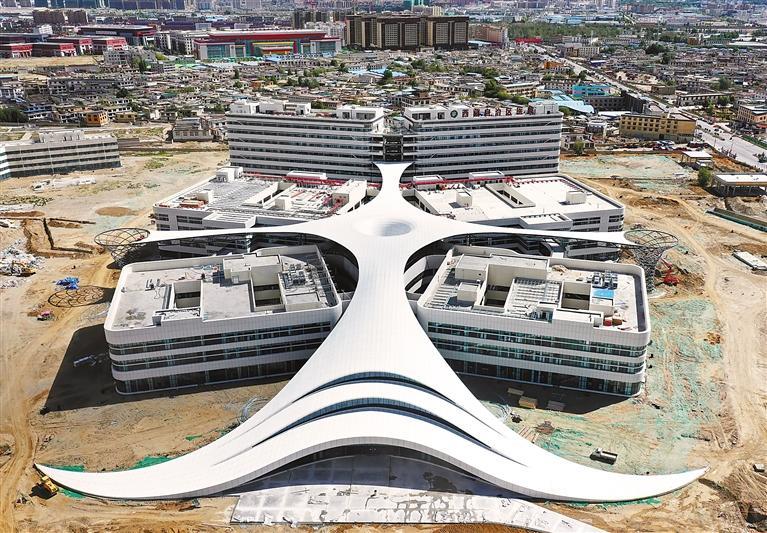 中央支持西藏自治區(qū)全面推進(jìn)就業(yè)、教育、醫(yī)療、住房等重大民生工程項(xiàng)目建設(shè)。圖為正在建設(shè)的西藏自治區(qū)醫(yī)院。