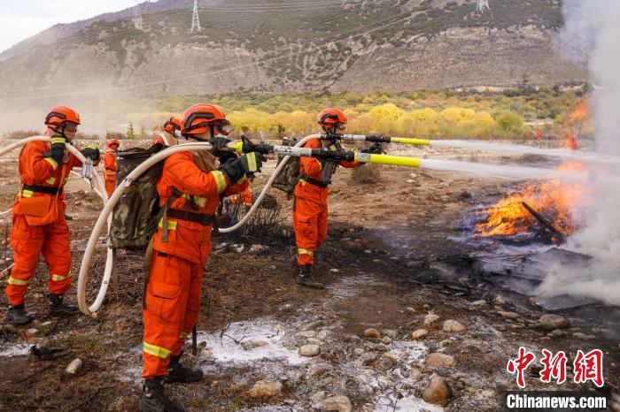 圖為林芝市2022年處置森林火災應急演練現(xiàn)場?!钣例垺z