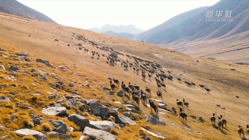 青海海西:上百只白唇鹿現(xiàn)身柏樹(shù)山