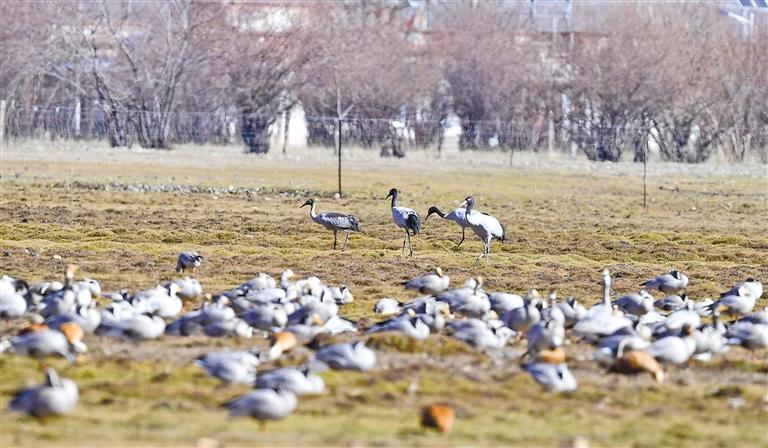 近年來,西藏多措并舉實施生態(tài)建設(shè)工程,黑頸鶴數(shù)量逐年遞增,目前西藏黑頸鶴數(shù)量超過萬只,每年到拉薩市林周縣越冬的黑頸鶴有2000只左右。