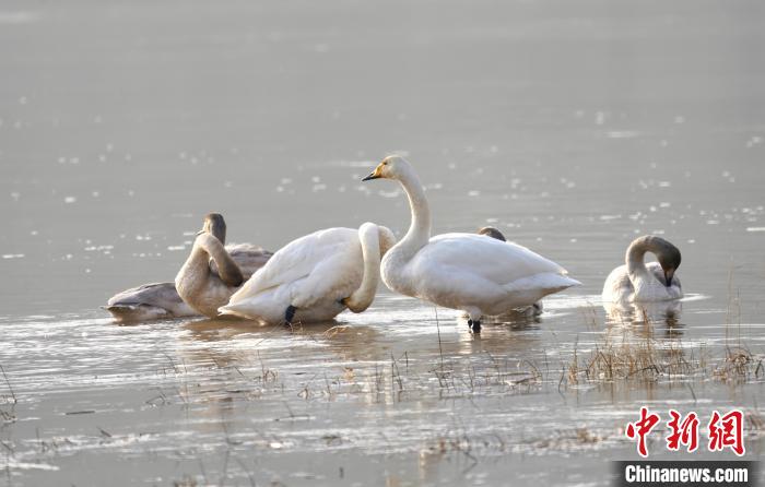 圖為青海省海東市化隆縣黃河流域的天鵝。 李玉峰 攝