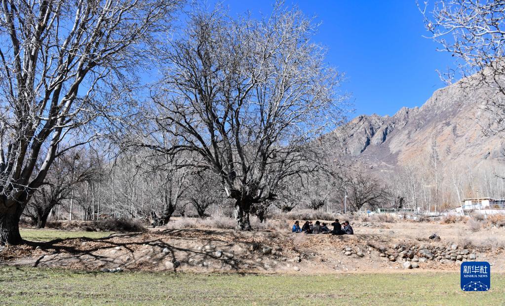 山南市加查縣拉崗村的村民在核桃樹下聊天拉家常(2月1日攝)。新華社記者格桑邊覺 攝