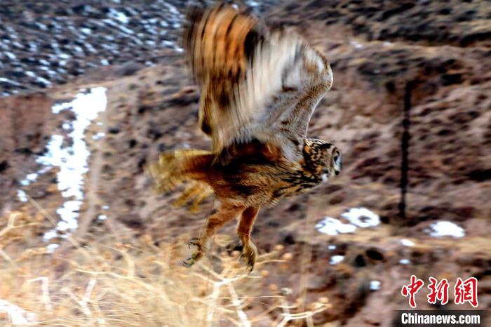 圖為放歸自然的雕鸮。 石延壽 攝