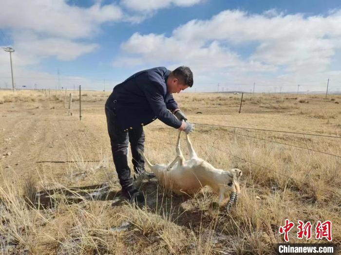 據介紹,3月12日11時許,青藏集團公司西寧電務段哈爾蓋信號車間哈爾蓋信號工區(qū)的3名職工在徒步前往管內那仁中繼站檢修信號設備途中發(fā)現,有動物掛在網圍欄,無法掙脫。