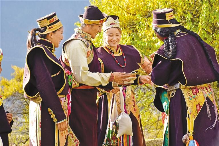 巴宜區(qū)布久鄉(xiāng)擁有濃厚的工布民俗文化氛圍,當(dāng)?shù)爻浞职l(fā)揮“旅游+民俗文化”的優(yōu)勢,吸引游客前來體驗(yàn)。圖為布久鄉(xiāng)朵當(dāng)村身著傳統(tǒng)工布藏裝的村民。