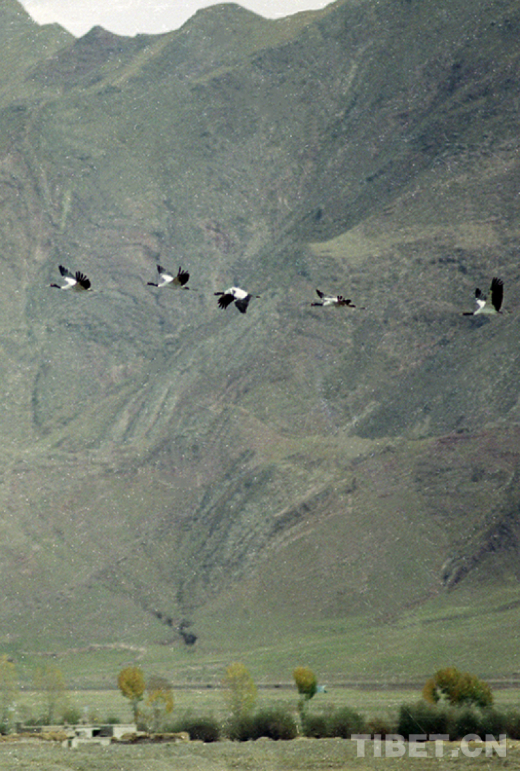 為適應(yīng)高原氣候的季節(jié)變化,黑頸鶴每年都要進(jìn)行遷徙,否則不僅難以抵御高原嚴(yán)寒,也會(huì)因找不到食物而被餓死。故黑頸鶴每年九、十月份,由藏北申扎等縣向南遷徙到雅魯藏布江中游河谷地帶及其主要支流——拉薩河與年楚河谷地帶越冬,至翌年三四月開始飛到藏北草原“生兒育女”。