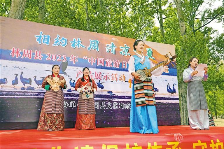 活動采取“文藝表演+現(xiàn)場推介”的方式,讓游客和當(dāng)?shù)卮迕癫粌H能欣賞到精彩的文藝表演,還能一睹林周非遺項目的風(fēng)采,深受大家歡迎。