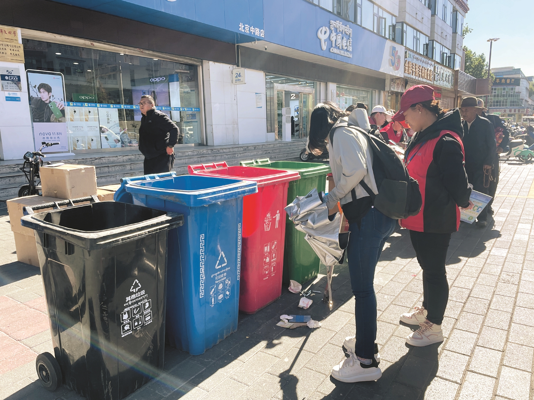 圖為活動(dòng)現(xiàn)場(chǎng),工作人員引導(dǎo)廣大市民群眾積極參與垃圾分類。 拉薩融媒記者 小索朗曲珍攝