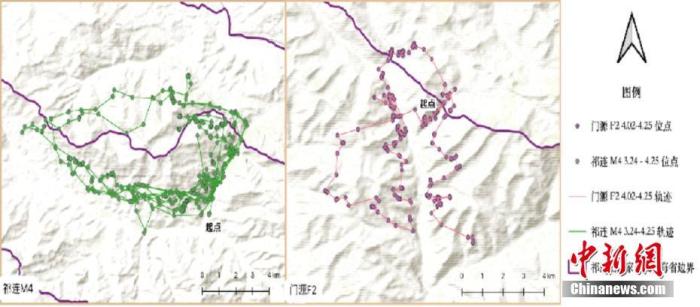 資料圖為被追蹤雪豹活動(dòng)點(diǎn)位分布圖。 中新社發(fā) 祁連山國(guó)家公園青海省管理局 供圖