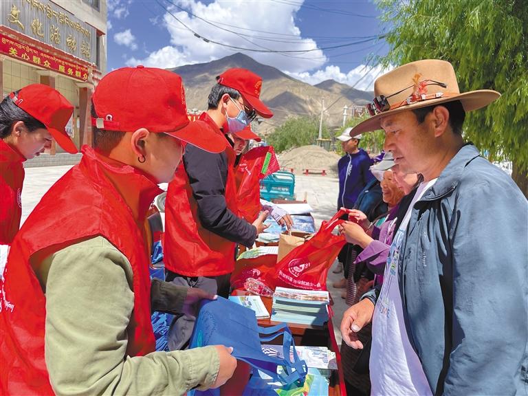 山南市新時代文明實踐志愿者在開展環(huán)保宣傳活動
