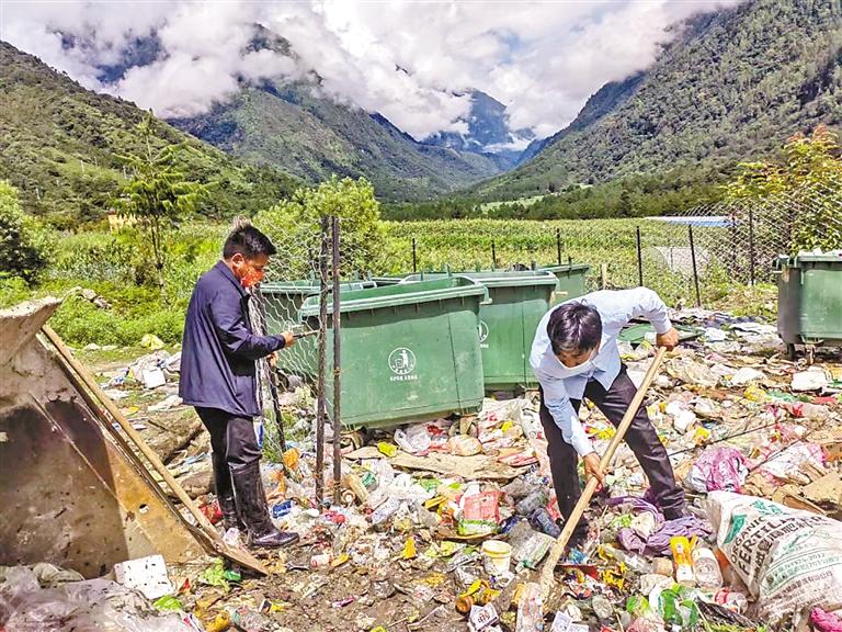 林芝市墨脫縣格當(dāng)鄉(xiāng)布龍村組織人員清理垃圾堆放點。記者 王敏 通訊員 郎玲 攝