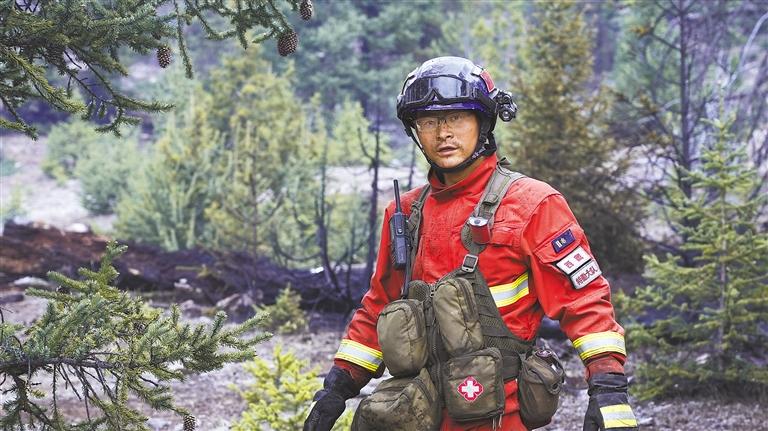 2020年的一天,林芝市突發(fā)一起森林火災(zāi)。3000多米的海拔,平均70度的坡度,還要背著幾十公斤的裝備,一個(gè)個(gè)不利因素都在考驗(yàn)著李渡和他的隊(duì)友們。面對(duì)困難和危險(xiǎn),身為分隊(duì)長(zhǎng)的李渡主動(dòng)請(qǐng)纓,要求第一批徒步接近火場(chǎng)打開突破口。李渡背上管帶、水泵,帶領(lǐng)著隊(duì)友們毅然走向火場(chǎng)。大火撲滅后,曾有人問他怕不怕?他說,怕是怕,但我們絕不能退,因?yàn)樯较掠刑嗥诖覀兒孟⒌娜嗣袢罕姟?/p>