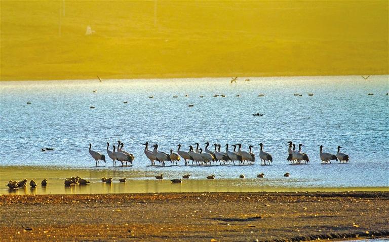 “生態(tài)好不好,看鳥(niǎo)就知道?!苯?,在西藏越冬的“老朋友”黑頸鶴越來(lái)越多。每年3月中旬,黑頸鶴會(huì)從越冬地——雅江中游河谷及其支流拉薩河、年楚河流域的“一江兩河”地區(qū),飛去羌塘北部草原等地繁育后代;10月中下旬又從繁殖地——那曲的班戈縣、申扎縣、嘉黎縣,阿里的日土縣、普蘭縣,日喀則的昂仁縣及拉薩的當(dāng)雄縣返回到越冬地。黑頸鶴的成群遷徙、停歇或繁殖,正是生態(tài)環(huán)境持續(xù)向好的“最美注腳”。