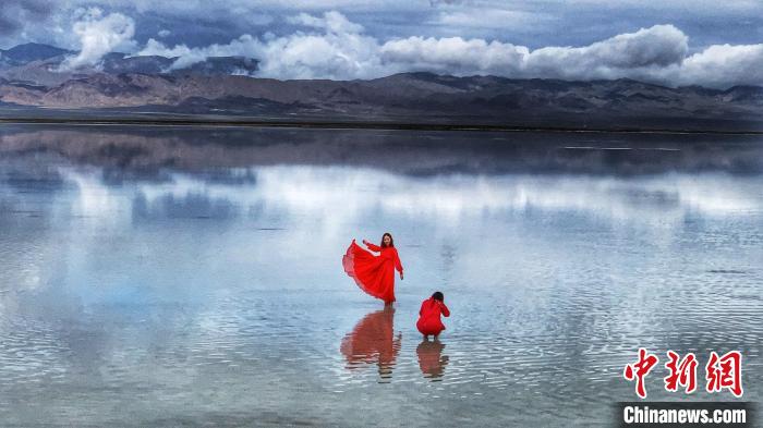 圖為柴達木盆地茶卡鹽湖“天空壹號”景區(qū)內(nèi),游客在鹽湖里拍照。(資料圖) 中新網(wǎng)記者孫睿 攝