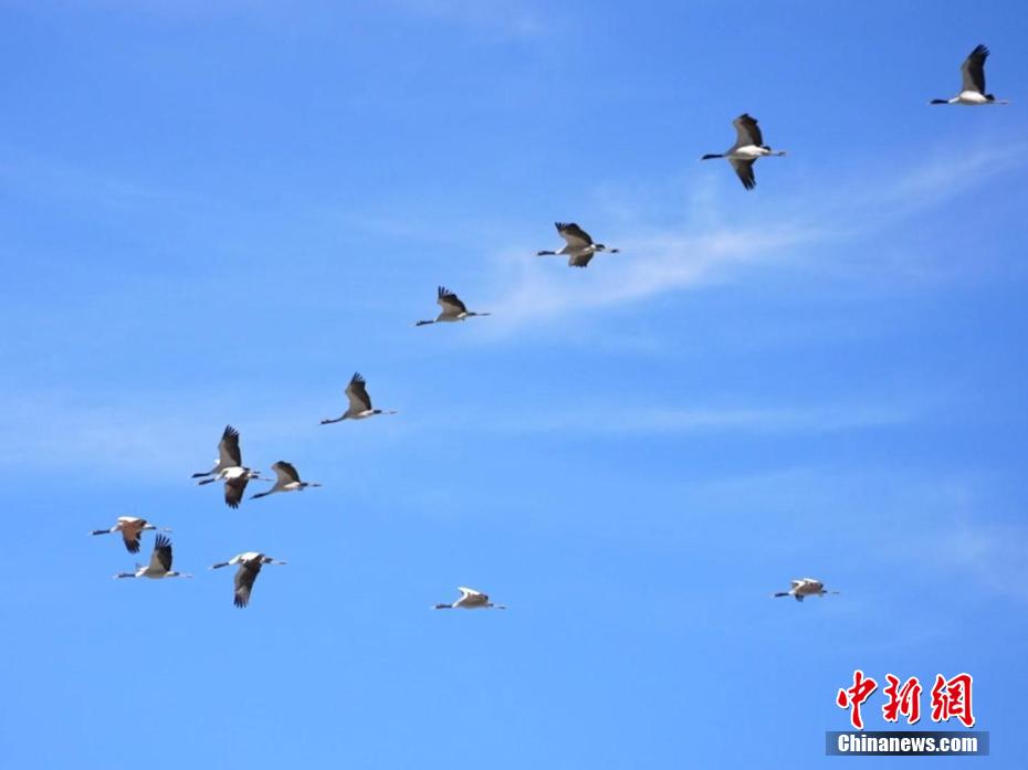 西藏米林迎來(lái)大批黑頸鶴越冬