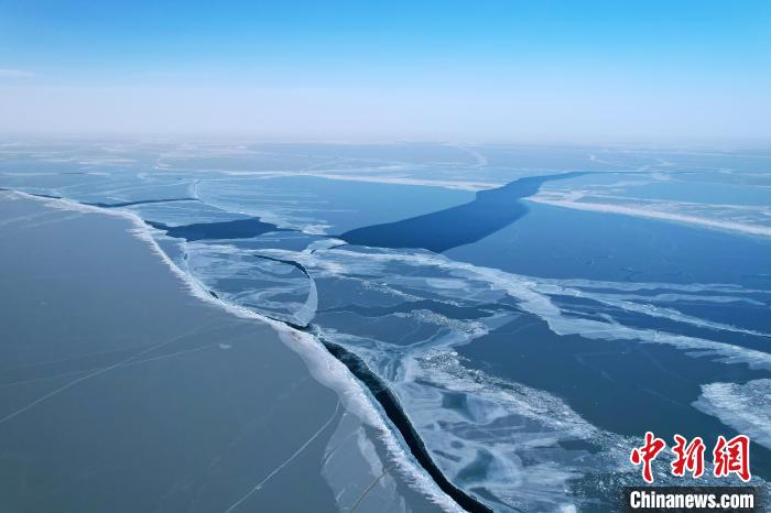 1月24日,記者從無人機視角看到青海湖的白色冰面出現(xiàn)裂縫,露出深藍色的湖水。據(jù)了解,受冷空氣影響,1月19日,青海湖流域出現(xiàn)吹風天氣,20日白天,黑馬河氣象站出現(xiàn)16.2米每秒的大風,當日青海湖出現(xiàn)裂縫,長約98.77千米,最寬處寬約1.8千米。專家表示,已完全凍結的青海湖冰面再次出現(xiàn)明顯裂縫,這一現(xiàn)象實屬少見。