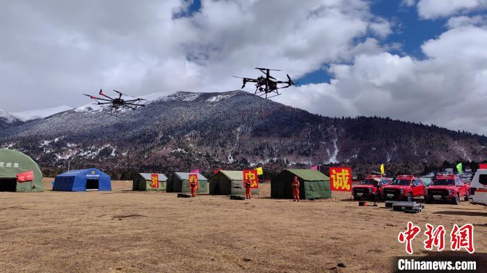 圖為拉練中開展無(wú)人機(jī)群編隊(duì)飛行訓(xùn)練。西藏林芝市森林消防支隊(duì)供圖