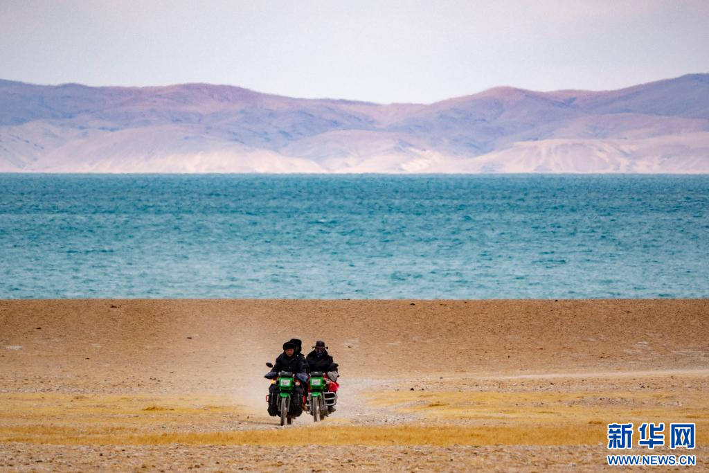 4月14日,野保員次成塔青在色林錯(cuò)國(guó)家級(jí)自然保護(hù)區(qū)巡邏。新華網(wǎng) 旦增努布 攝