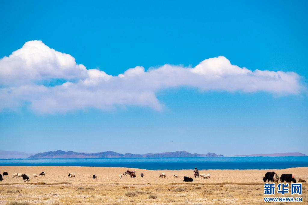 4月14日,在色林錯(cuò)國(guó)家級(jí)自然保護(hù)區(qū)拍攝的放牧人。新華網(wǎng) 旦增努布 攝