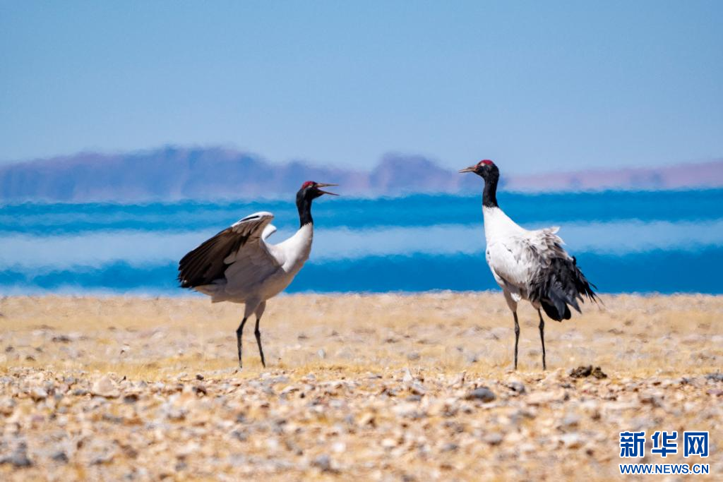 4月14日,在色林錯(cuò)國(guó)家級(jí)自然保護(hù)區(qū)拍攝的黑頸鶴。新華網(wǎng) 旦增努布 攝