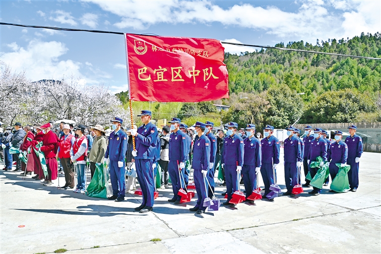 為高質(zhì)量推動生態(tài)環(huán)境保護(hù)工作各項整改任務(wù)落實落細(xì),近日,西藏林芝市森林消防支隊巴宜區(qū)中隊與轄區(qū)各單位攜手合作,開展“凈美巴宜”環(huán)境衛(wèi)生專項整治行動。