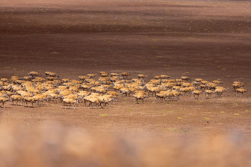 大群藏羚羊在羌塘保護區(qū)核心區(qū)向產羔地遷徙(5月9日攝)。