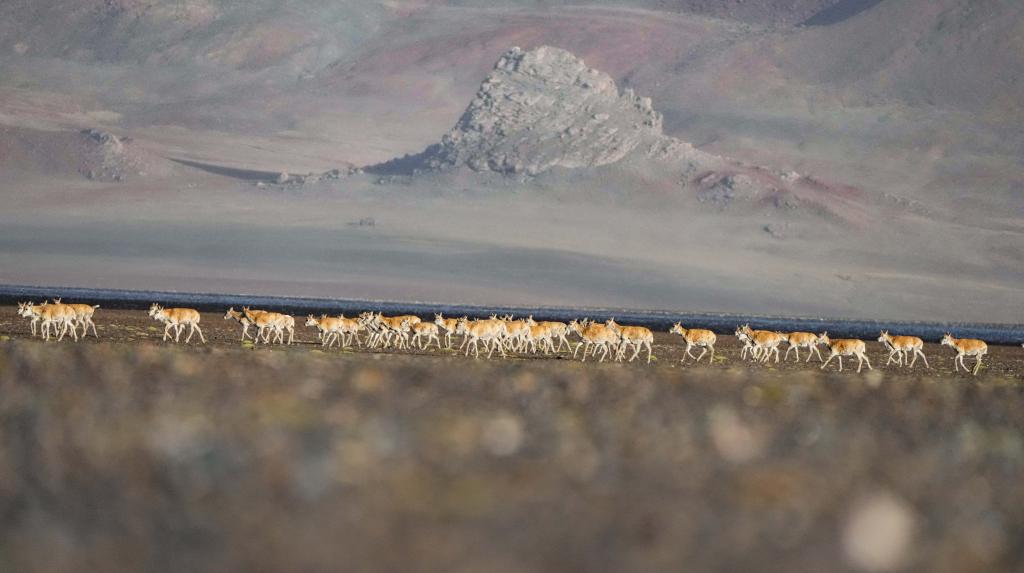 遷徙途中的藏羚羊(6月14日攝)。
