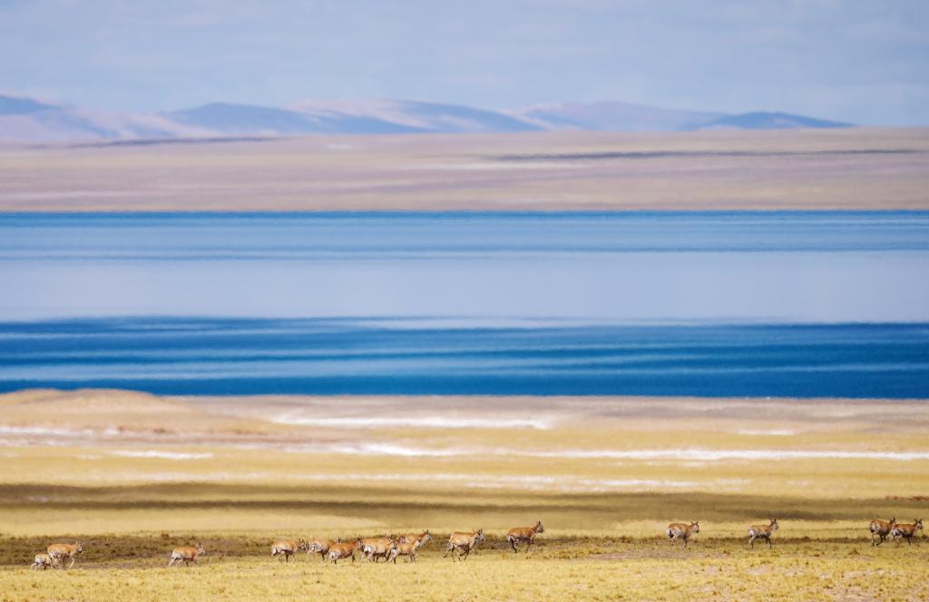 甜水河附近遷徙的藏羚羊(6月14日攝)。