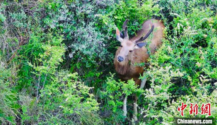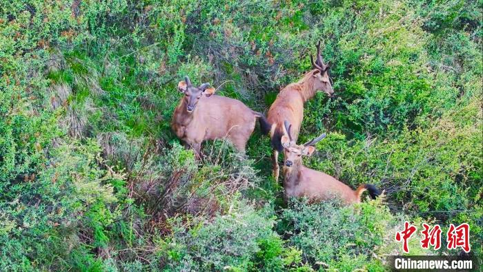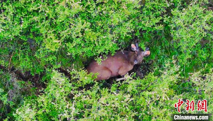 圖為無人機(jī)拍攝水鹿在叢林里活動(dòng)。 班瑪縣融媒體中心 供圖