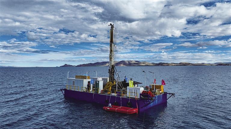 納木錯(cuò)水上鉆探平臺(tái)(無(wú)人機(jī)照片)。 新華社記者 晉美多吉 攝