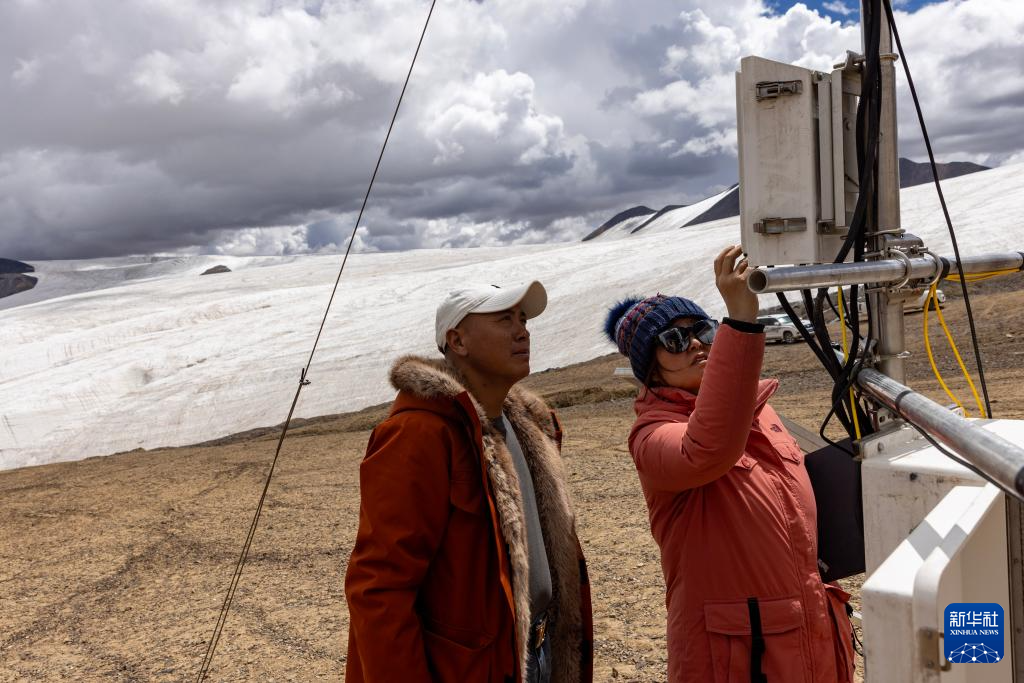 科研人員牛曉偉(右)在冰川末端調(diào)試大氣采樣儀器(9月2日攝)。新華社記者 姜帆 攝