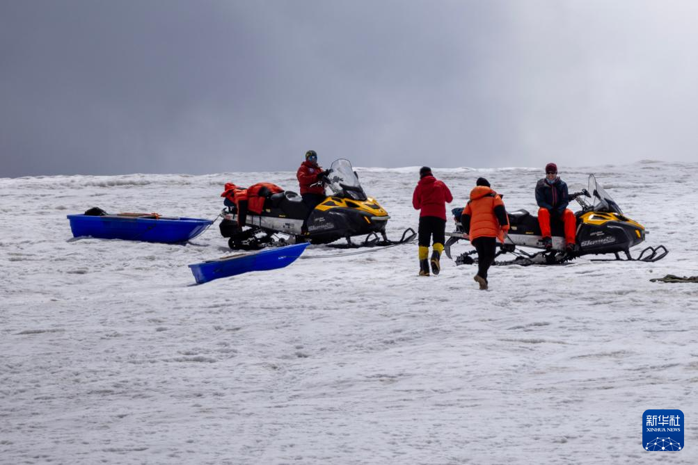 科考隊員準(zhǔn)備搭乘雪地摩托前往冰原深處作業(yè)(9月4日攝)。新華社記者 姜帆 攝