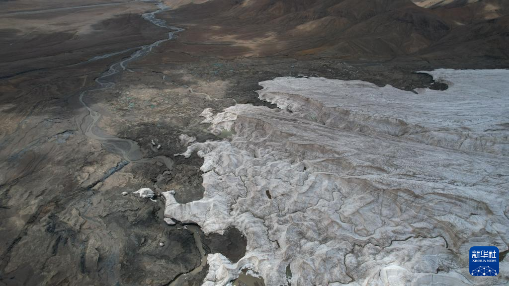 這是9月4日拍攝的普若崗日冰原8號冰川和冰川消融形成的徑流(無人機照片)。新華社記者 劉詩平 攝