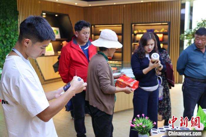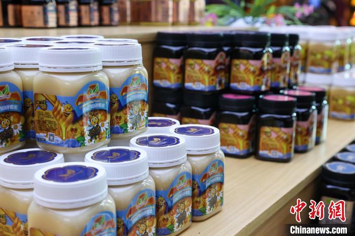 9月24日,記者跟隨2024年青海湖生態(tài)保護(hù)能力提升培訓(xùn)班來到青海省海南藏族自治州貴德縣青海青藏蜜蜂良種養(yǎng)殖場,展臺上擺放著各類藏蜜。中新社記者 薛蒂 攝