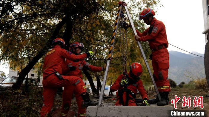 圖為地震救援實戰(zhàn)化演練中開展豎井救援。西繞拉翁 攝