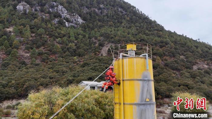 圖為地震救援實戰(zhàn)化演練中開展鐵塔營救。西繞拉翁 攝