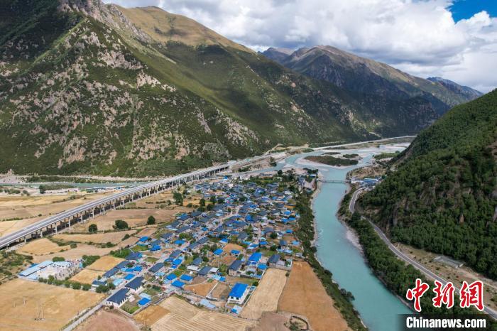 2024年9月1日拍攝的西藏林芝工布江達(dá)縣高等級(jí)公路(左)和國道318線(右)。(無人機(jī)畫面)中新社記者 江飛波 攝