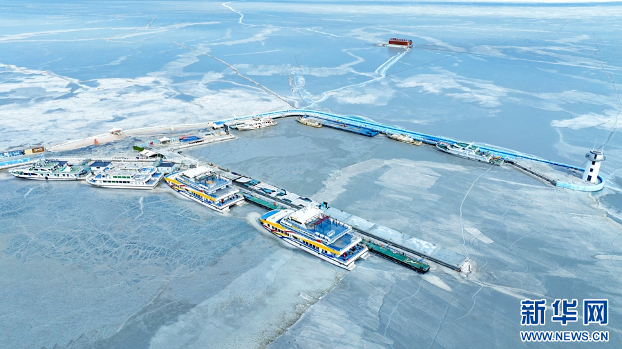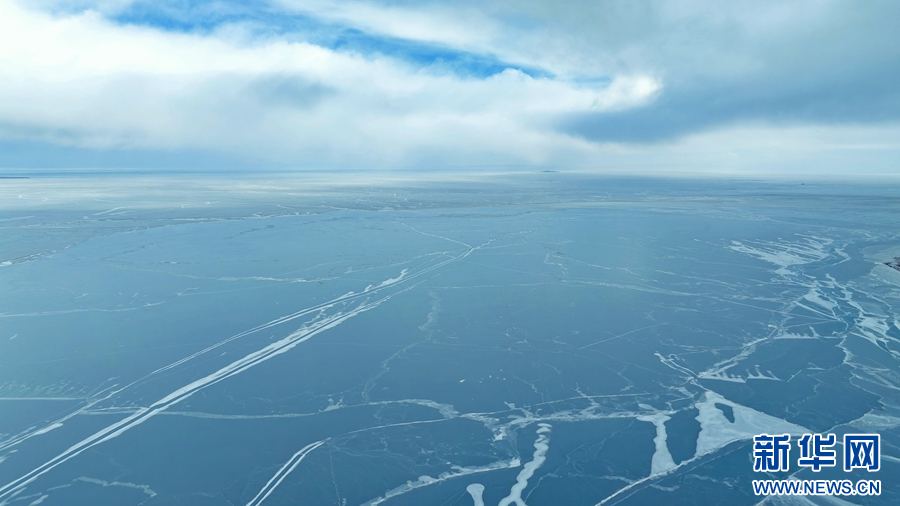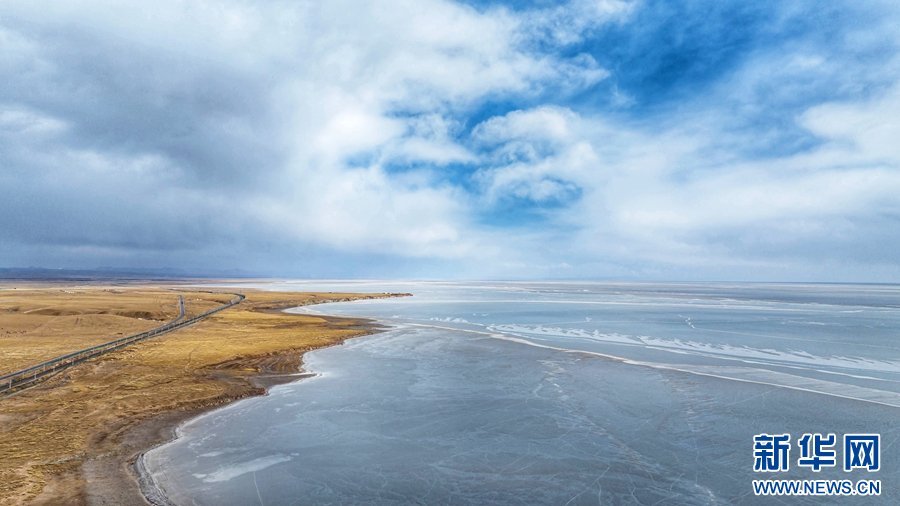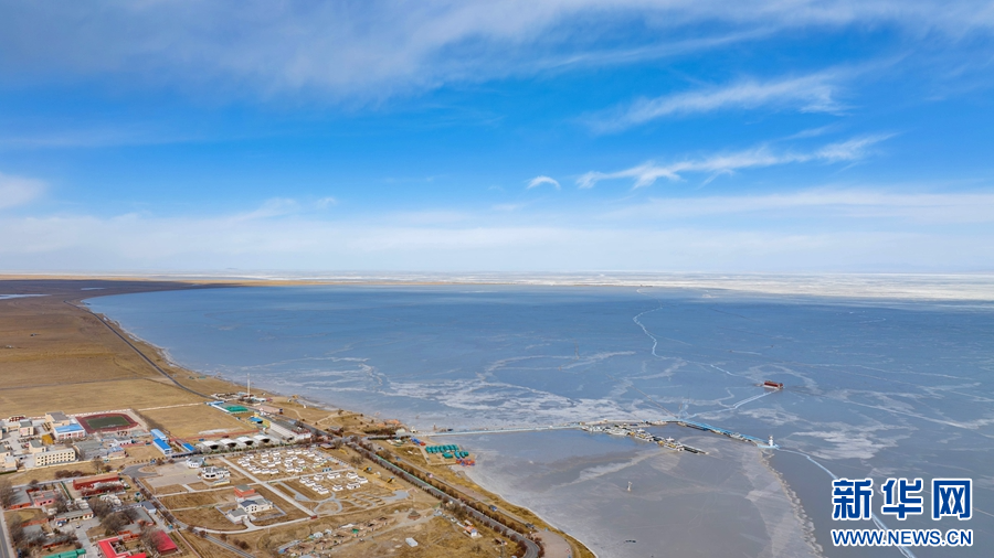 這是2月15日拍攝的青海湖北岸一角(無(wú)人機(jī)照片)。新華網(wǎng)發(fā) (宋忠勇 攝)