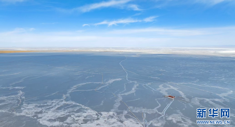 初春時(shí)節(jié),被譽(yù)為“高原藍(lán)寶石”的青海湖還被厚厚的冰層覆蓋,冰封玉砌的湖面在陽(yáng)光下景色壯美、別具特色。新華網(wǎng)發(fā) (宋忠勇 攝)
