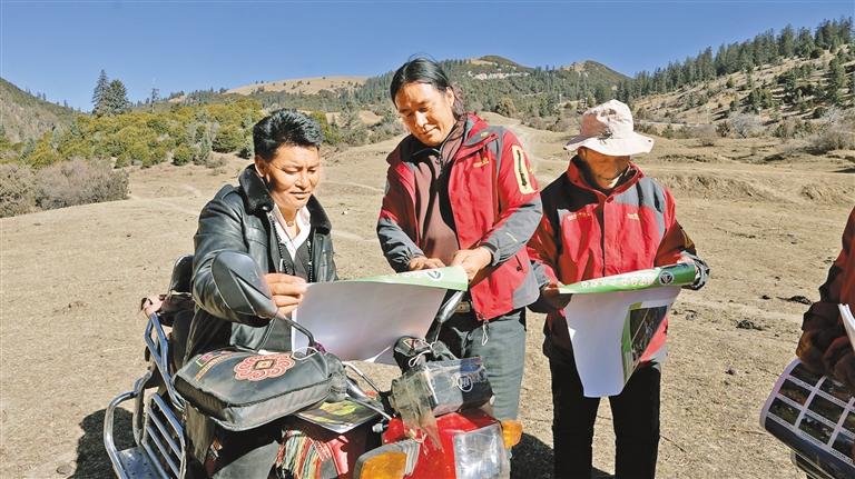 貢覺縣則巴鄉(xiāng)衛(wèi)通村的護(hù)林員向上山放牧的牧民宣傳護(hù)林防火知識。記者 貢秋曲措 通訊員 董燕 西繞丹青 攝