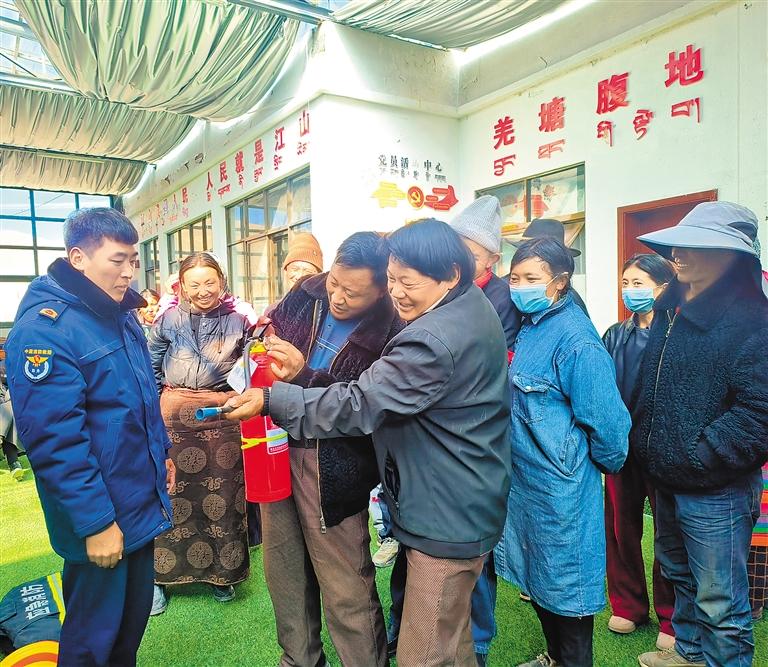 圖為改則縣消防救援大隊工作人員為牧區(qū)群眾講解消防器材使用技巧。 圖片由改則縣消防救援大隊提供
