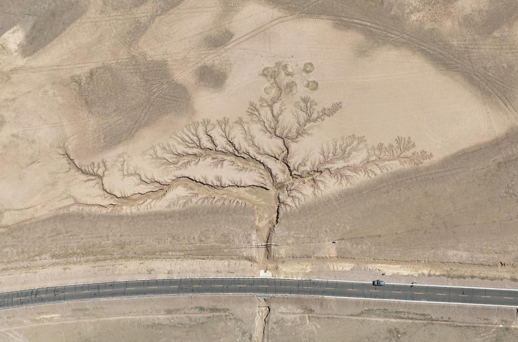 2023年4月22日在西藏自治區(qū)那曲市拍攝的“天空之樹”景觀(無人機(jī)照片)。新華社記者姜帆攝