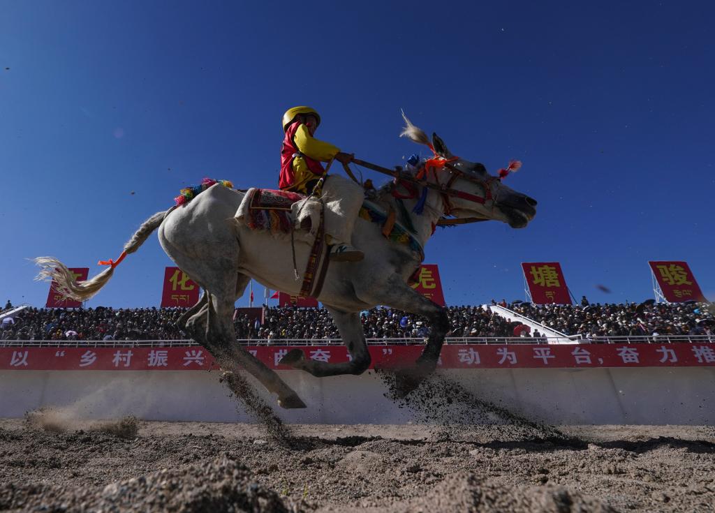 2024年8月11日,恰青賽馬節(jié)暨第三屆“鄉(xiāng)村振興那曲奮進(jìn)”活動在西藏自治區(qū)那曲市色尼區(qū)開賽。這是選手在比賽中。新華社記者晉美多吉攝
