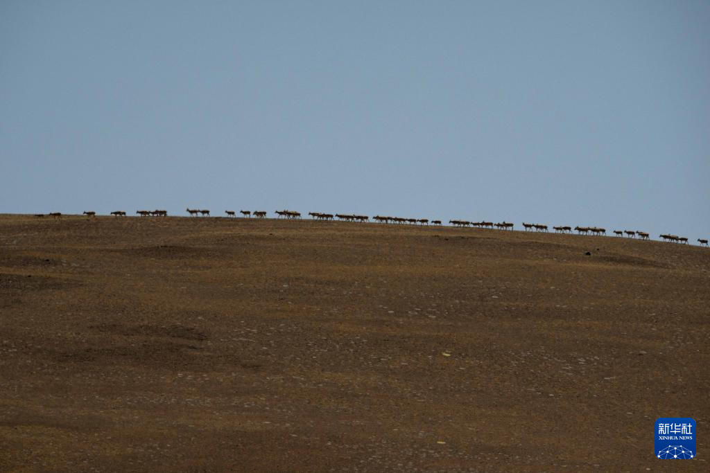 在羌塘國家級自然保護區(qū)核心區(qū)拍攝到的雌性藏羚羊群(6月10日攝)。新華社記者 旦增尼瑪曲珠 攝