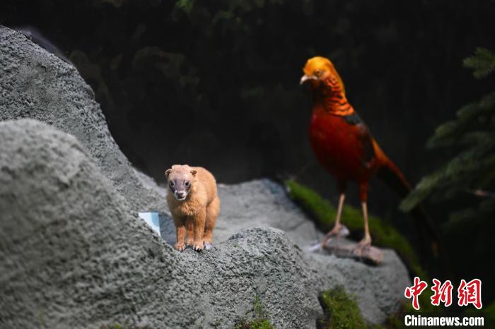 6月16日,在位于甘肅省張掖市肅南裕固族自治縣的祁連山國(guó)家公園自然博物館展陳的黃鼬標(biāo)本(左)。中新社記者 李亞龍 攝