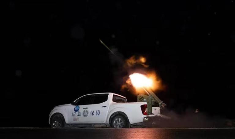 拉薩市人工影響天氣領(lǐng)導(dǎo)小組辦公室工作人員正在實(shí)施作業(yè)。圖由拉薩市氣象局提供