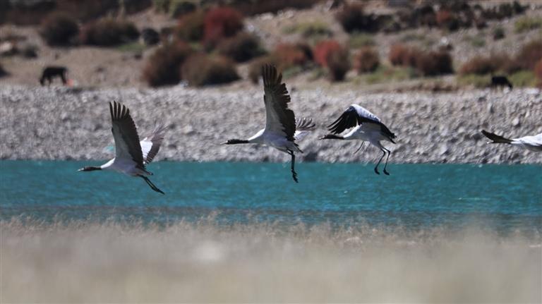 據(jù)了解,每年10月中下旬,前往墨竹工卡縣越冬的黑頸鶴會陸續(xù)抵達(dá),它們的活動范圍主要集中在唐加鄉(xiāng)、扎西崗鄉(xiāng)、工卡鎮(zhèn)、甲瑪鄉(xiāng)及扎雪鄉(xiāng)一帶,成為當(dāng)?shù)厍锒竟?jié)一道獨特的生態(tài)風(fēng)景線。在西藏,黑頸鶴的身影遍布55個縣域,它們主要選擇高原河流、湖泊、沼澤和草甸等濕地作為棲息地。隨著西藏生態(tài)環(huán)境的改善以及人們對野生動物保護(hù)意識的增強,黑頸鶴的種群數(shù)量也在逐漸增多。2000年,黑頸鶴的數(shù)量大概是4000只,到現(xiàn)在整個西藏越冬區(qū)記錄到黑頸鶴的數(shù)量超過1萬只。