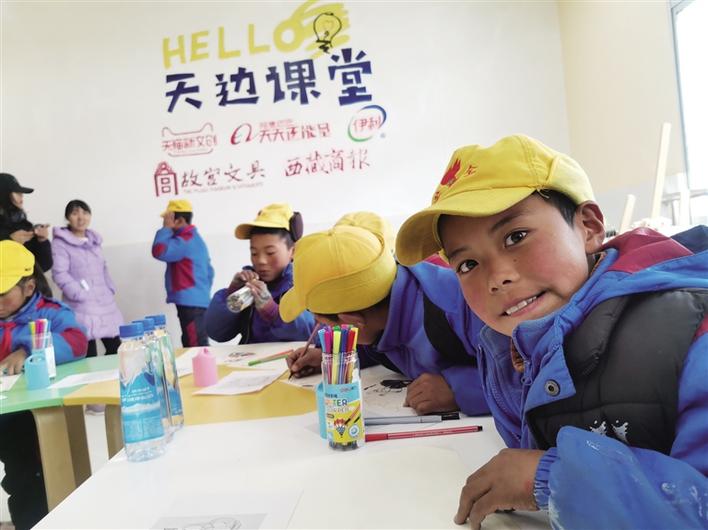 2019年8月,當(dāng)孩子們迎來新的一學(xué)期,天貓、人民日?qǐng)?bào)和故宮聯(lián)合宣布,故宮文具上線天貓。為了給孩子們一份特別的禮物,天貓新文創(chuàng)、阿里巴巴天天正能量、伊利、故宮文具、西藏商報(bào)聯(lián)合發(fā)起“天邊課堂”公益項(xiàng)目,為西藏一所村小改造一間海拔最高的“天邊課堂”教室,為孩子們送上故宮文具,設(shè)計(jì)形式多樣的美育課程,助力鄉(xiāng)村孩子在開學(xué)伊始揚(yáng)帆起航,開啟新學(xué)期新體驗(yàn)。